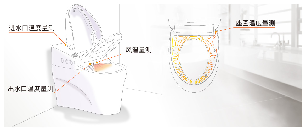 隨著人們的生活水平和消費能力的提升,以及智能技術(shù)在家居生活中的應(yīng)用普及,智能馬桶的使用也逐漸出現(xiàn)在越來越多的家庭中。智能馬桶自誕生以來,一直都是以加熱、清洗、沖水為三個最基礎(chǔ)的功能。在此基礎(chǔ)功能和技術(shù)支持下,發(fā)展出的創(chuàng)新功能日漸增多。目前市場上大多智能馬桶不僅集恒溫座圈、溫水洗凈、自動烘干等多項功能于一身,甚至有噴頭自潔、活性炭除臭、夜燈設(shè)計、音樂搭載、按摩等人性化功能,為居民提供了便捷的潔身功效和舒適的清洗體驗,滿足了居民對舒適生活和對健康生活的需求。興勤針對智能馬桶開發(fā)了具備座溫偵測、水溫偵測、風(fēng)溫偵測功能的溫度傳感器,為智能馬桶的人性化設(shè)計保駕護航。